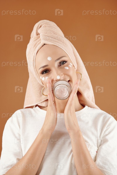 Привлекательная женщина с банкой сливок