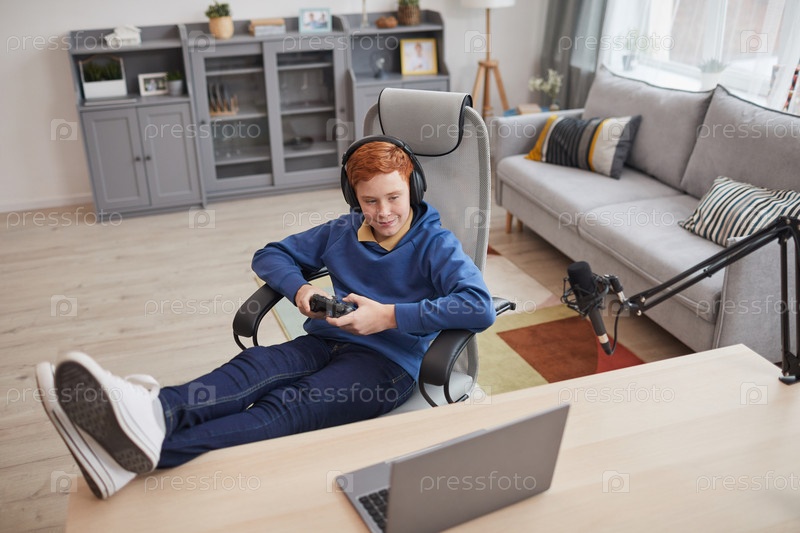 Красноволосый мальчик играет в видеоигры