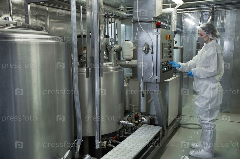 Молодая женщина-работница контролирует производство