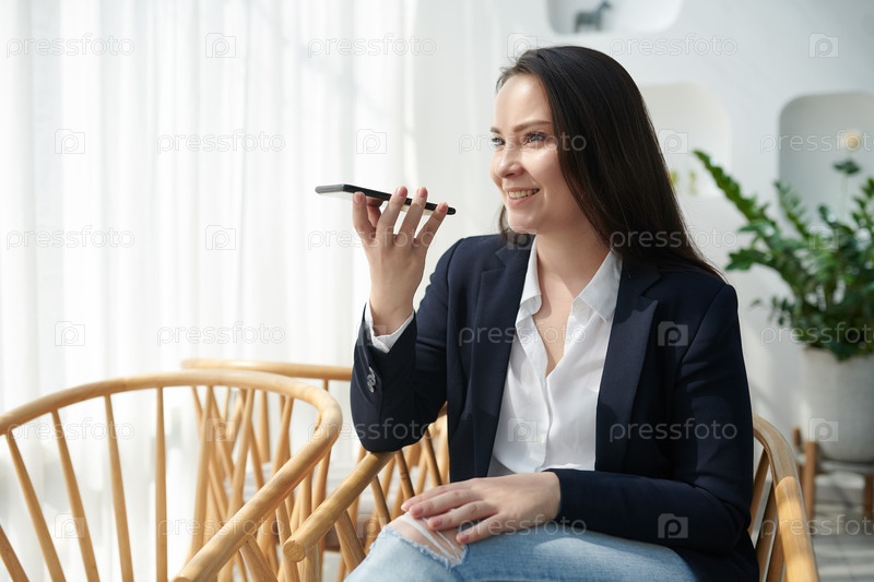 Молодая женщина записывает голосовое сообщение