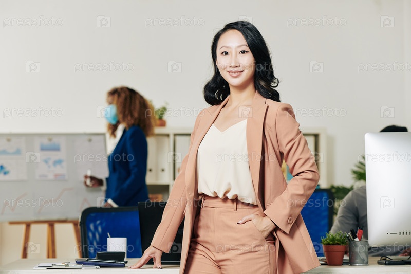 Женщина-предприниматель в персиковом костюме