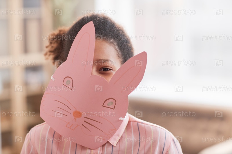 Афроамериканская девушка, носящая маску кролика на Пасху