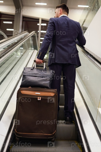 Бизнесмен на эскалаторе в аэропорту