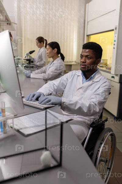 Ученый, работающий на компьютере в лаборатории