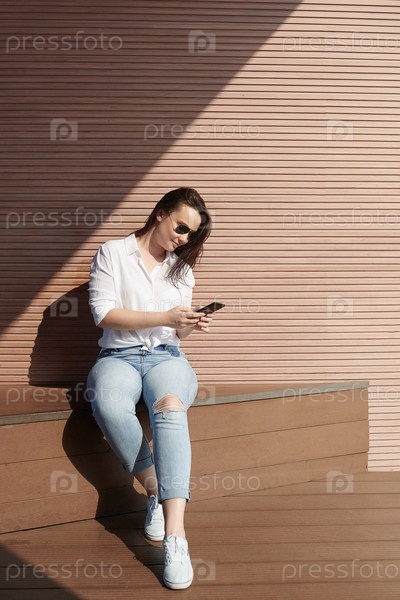 Девушка играет в игры на смартфоне