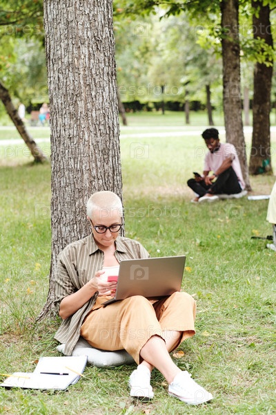 Женщина учится онлайн в парке