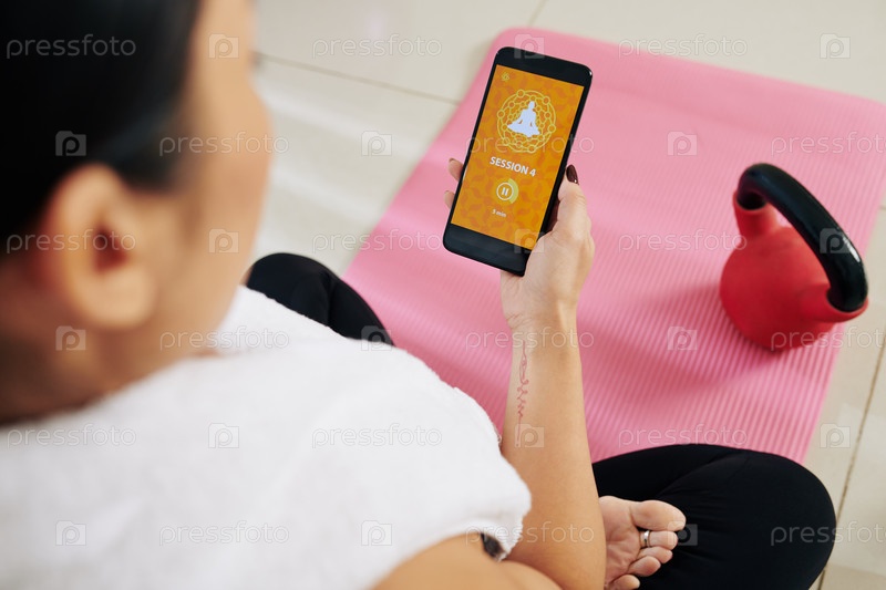 Женщина, использующая приложение йоги