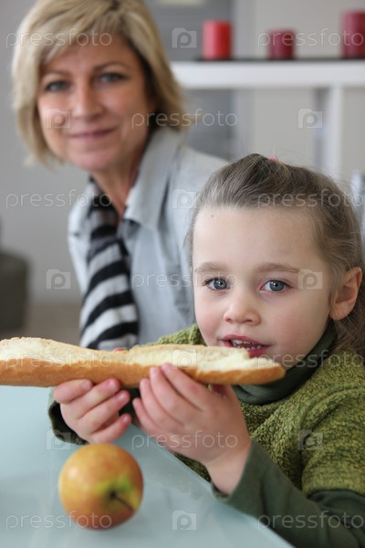 Маленькая девочка ест тост