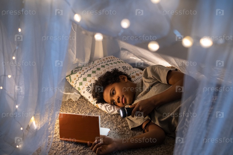 Американский мальчик читает сказку африканцы