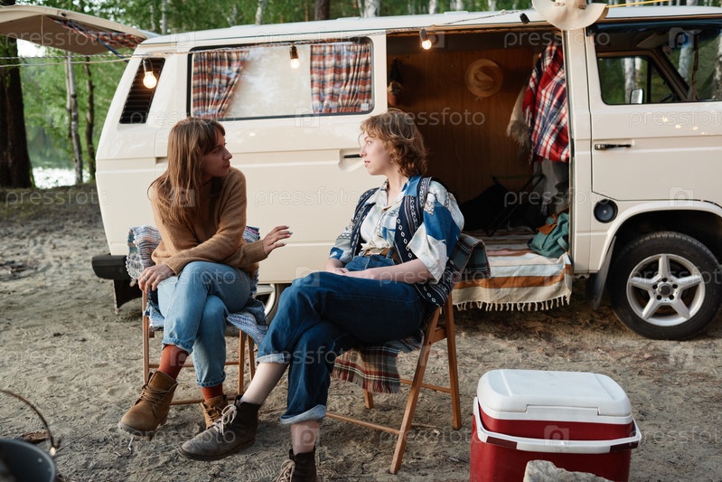 Пешеходы, сидящие на открытом воздухе во время кемпинга