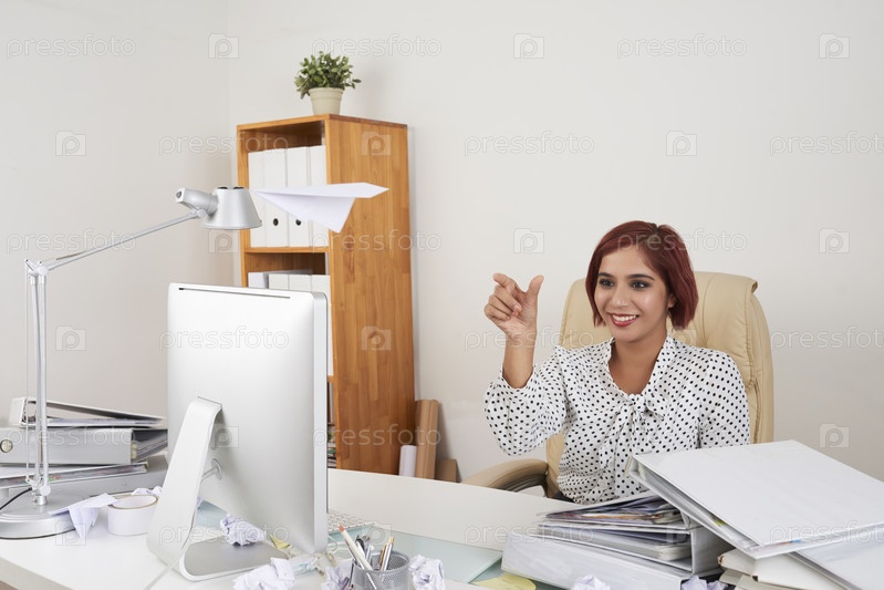 Деловая женщина бросает бумажный самолет