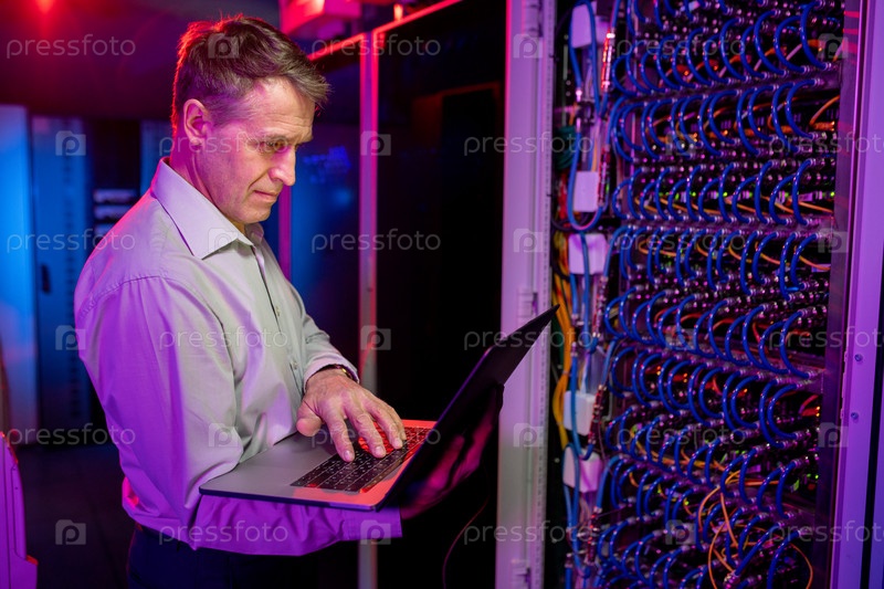 Зрелый ИТ-инженер, работающий с сервером