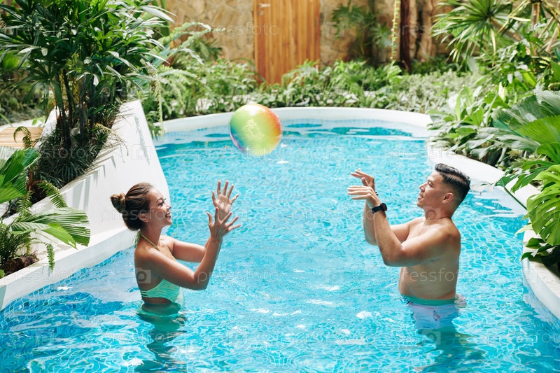 Пара, играющая в бассейн