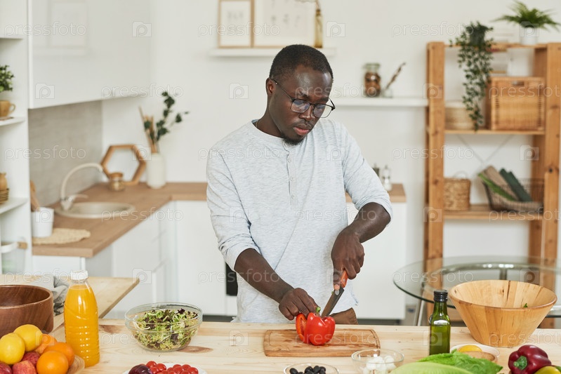 Мужчина режет овощи