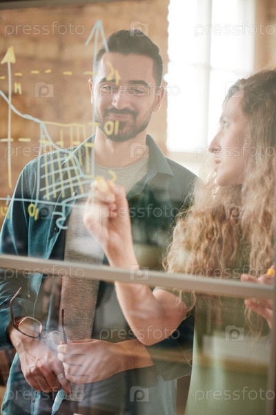 Бизнесмены, работающие с графикой в офисе