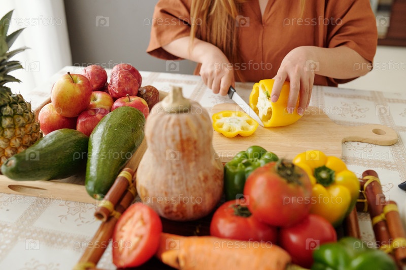 Женщина, режущая колокольчик и перец