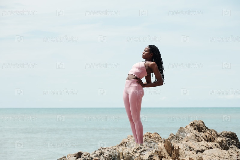 Женщина занимается спортом на острых скалах