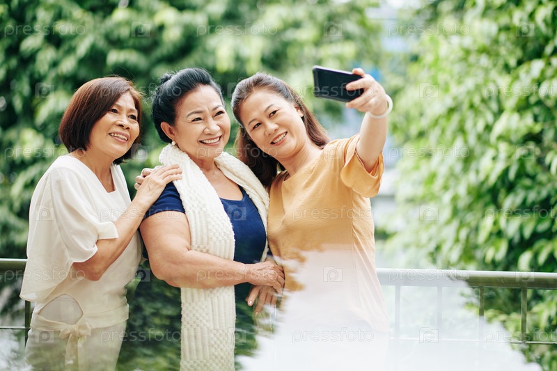 Пожилые женщины позируют для селфи