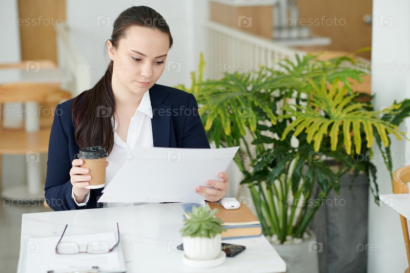 Деловая женщина анализирует отчет