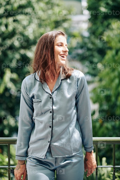 Молодая женщина на своем балконе