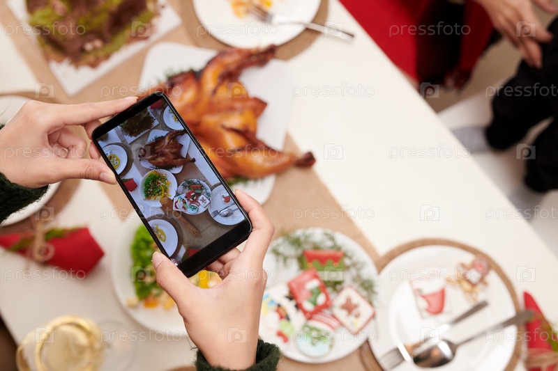 Человек, фотографирующий рождественский ужин