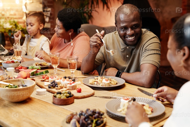 Улыбающийся афроамериканец на семейном ужине