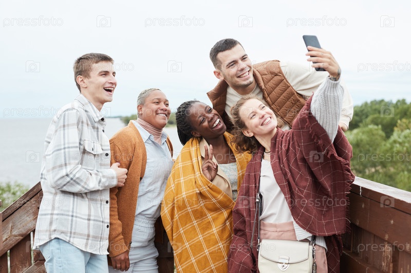 Друзья, которые делают селфи на свежем воздухе