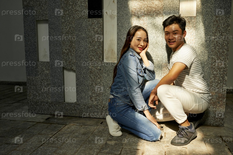 Улыбающийся молодой парень и девушка