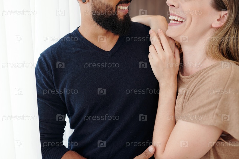 Смеющаяся счастливая молодая пара смеется