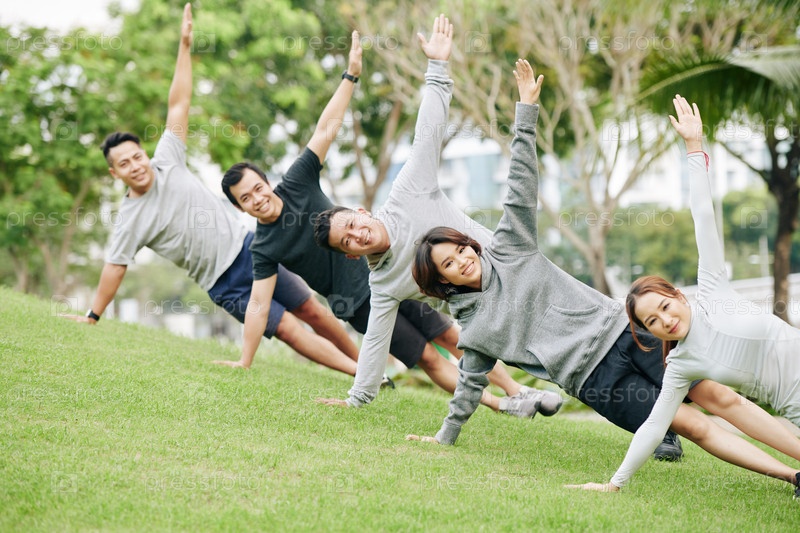 Молодые люди занимаются боковой доской
