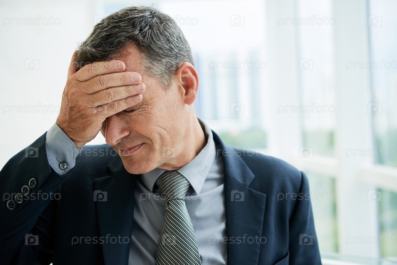 Исполнительный директор чувствует головную боль в офисе Мужчина