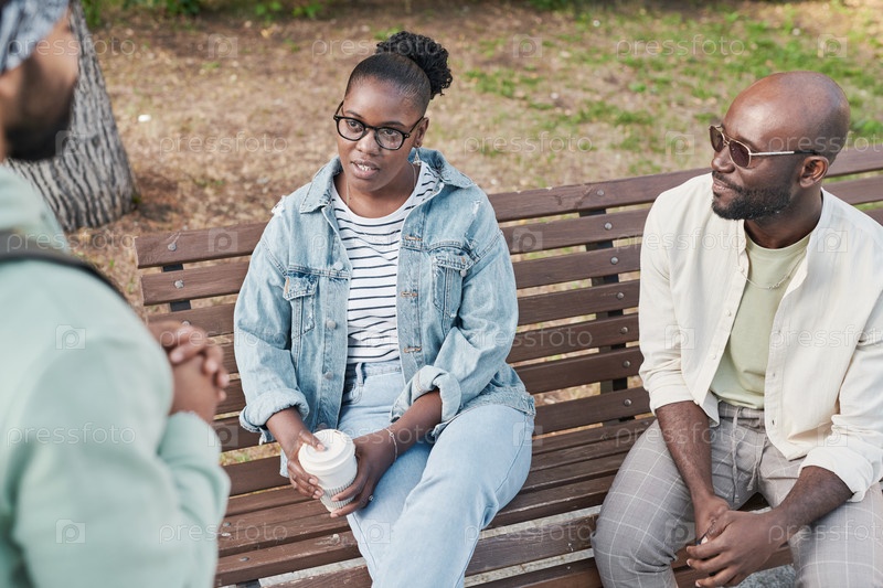 Женщина разговаривает с друзьями на улице