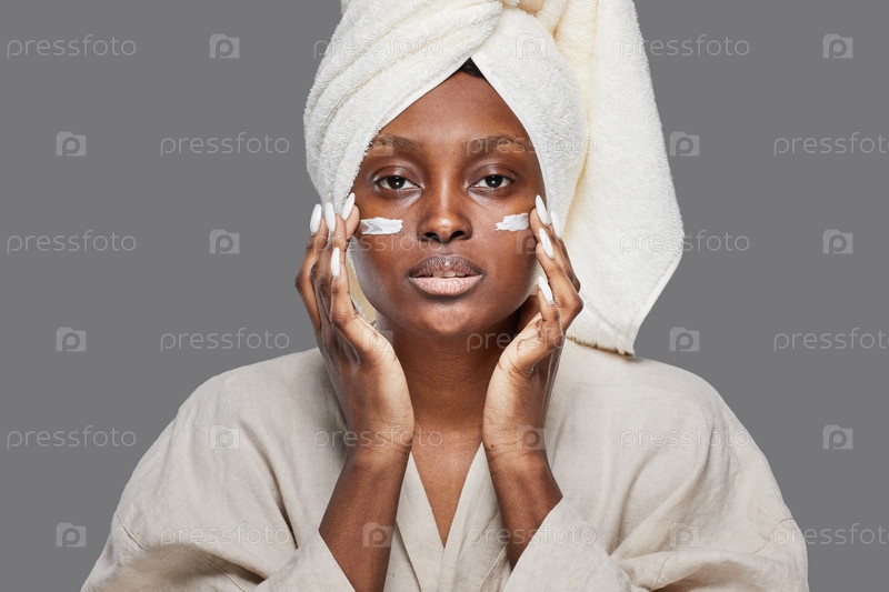 Молодая афроамериканская женщина наслаждается уходом за кожей