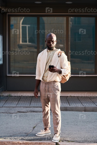 Молодой чернокожий мужчина использует GPS-навигацию на телефоне