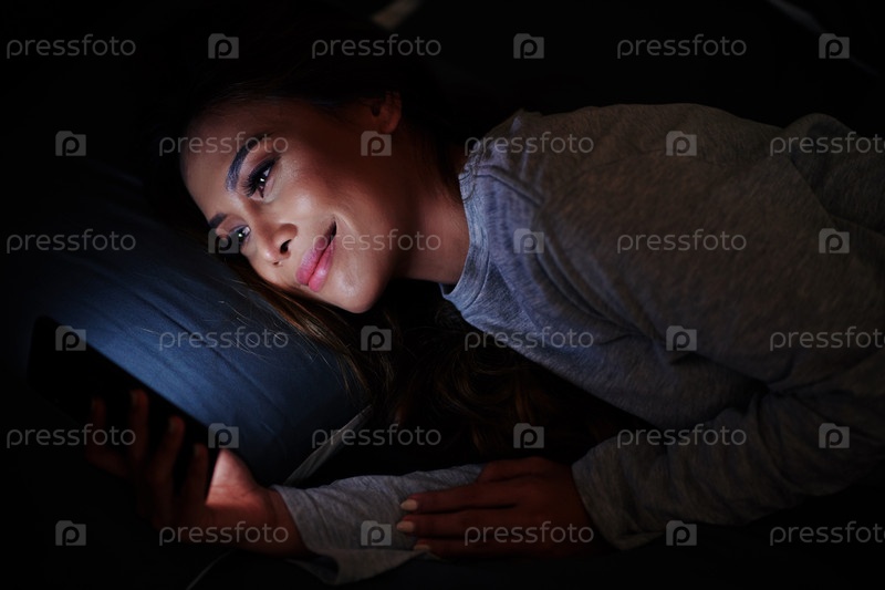Женщина смотрит фильм ночью
