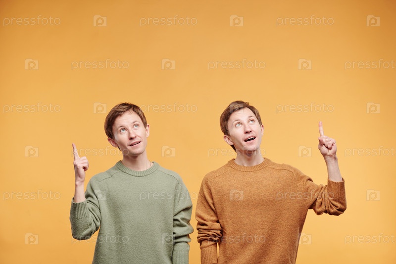 Близнецы, указывающие пальцами вверх