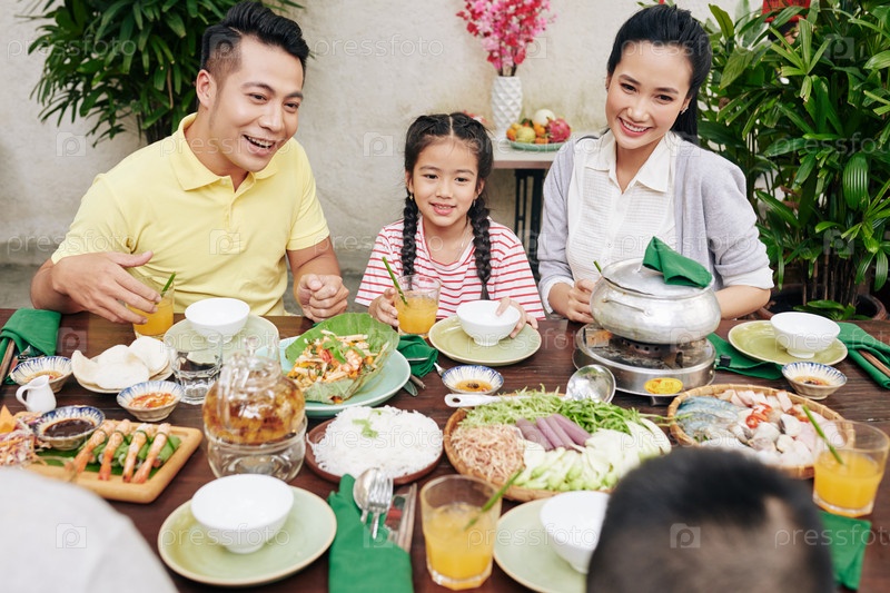 Родители и дети на семейном празднике