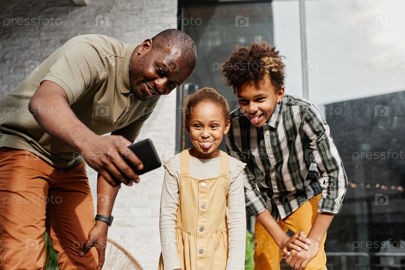 Отец фотографируется с детьми