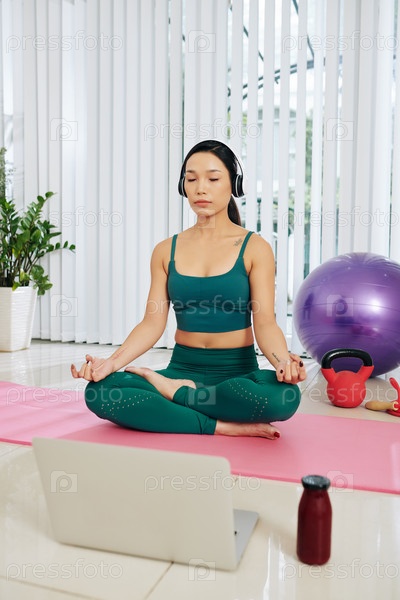 Женщина медитирует дома