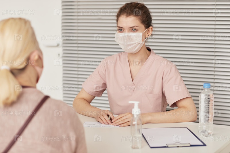 Женщина-врач консультирует пациентов