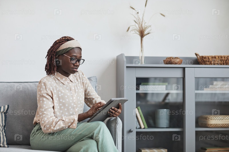 Молодая афроамериканская бизнесвумен, использующая планшет