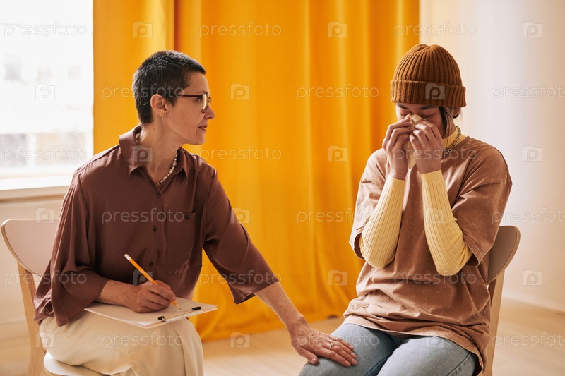 Женщина плачет на терапевтической сессии
