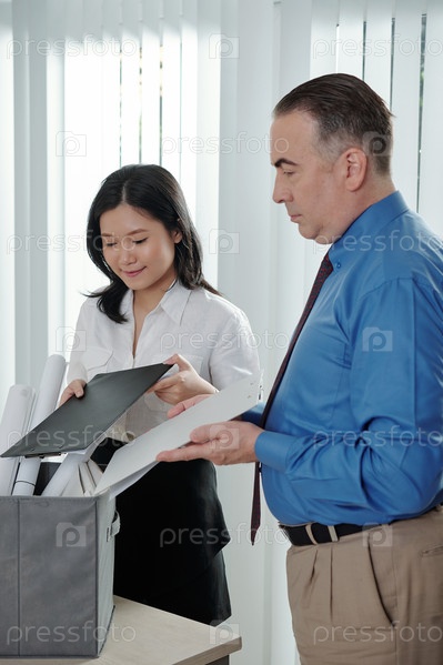 Мужчина помогает коллеге упаковать вещи