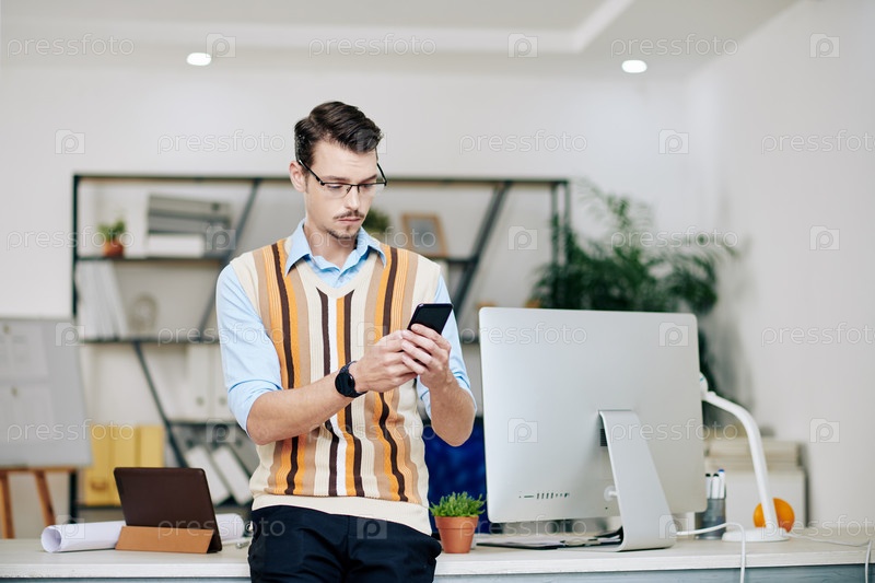 Бизнесмен проверяет телефон