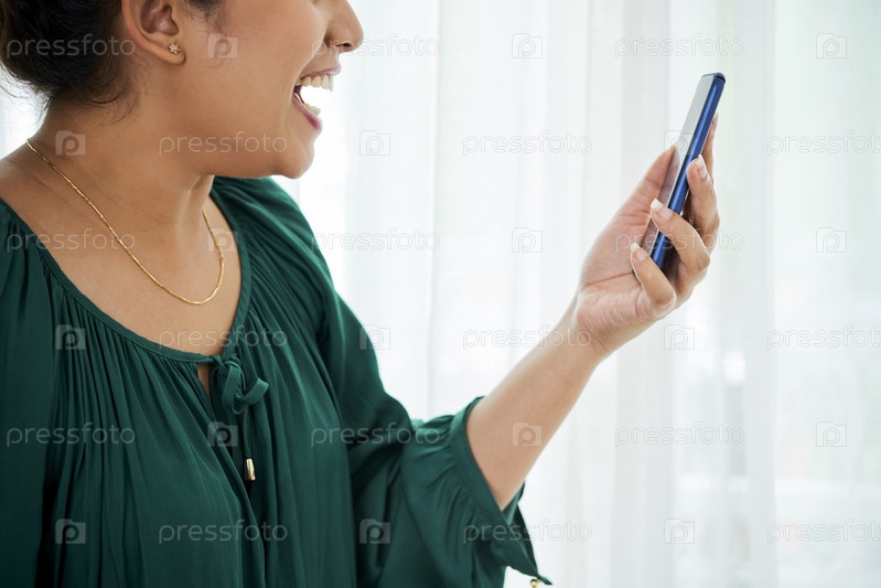 Взволнованная женщина, звонящая по видео