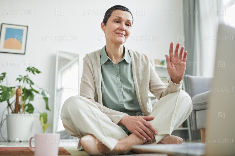 Взрослая женщина, размахивающая видеозвонком