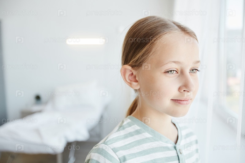 Девочка, глядящая в окно больницы