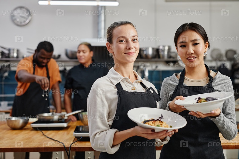 Официантки держат гурматные блюда