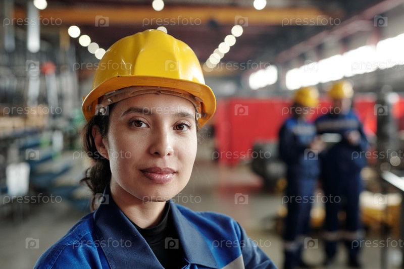 Портрет женщины смешанной расы, работающей на фабрике