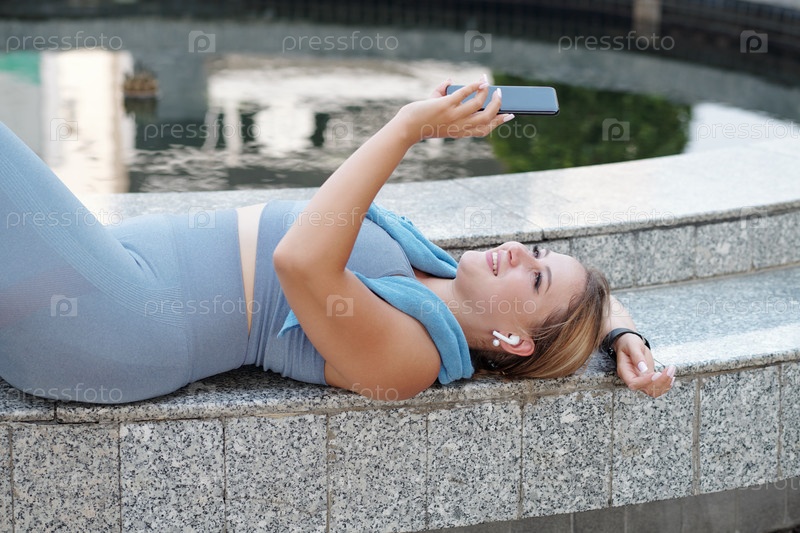 Женщина, расслабляющаяся после тренировки